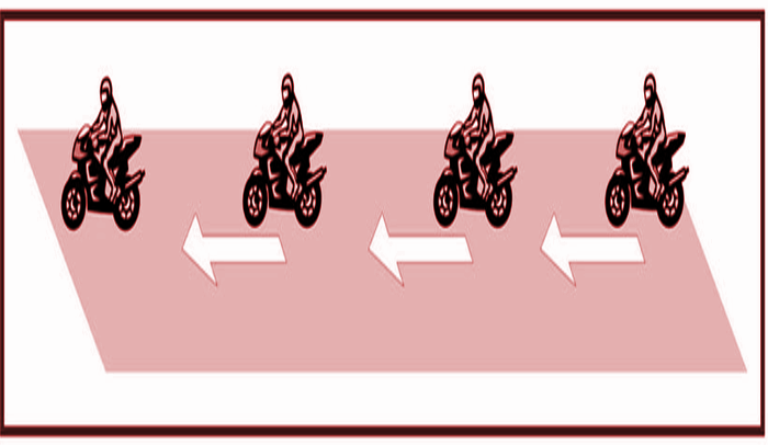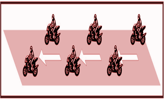 When the Route Chief indicates it or the route is narrow the group will form in single file increasing the safety distance between motorcycles